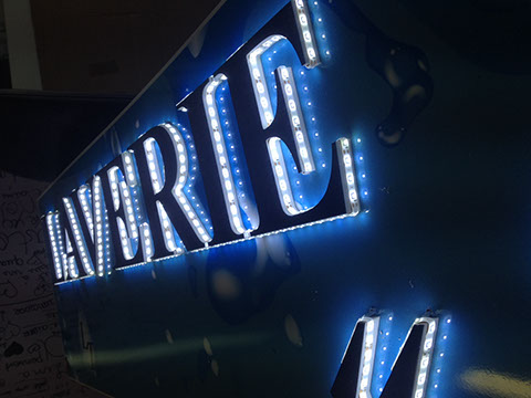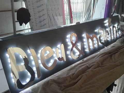 - La led en « rétro éclairé » (soit posée à l'arrière d’une lettre) donne un rendu de couleur plus subtil et plus discret à votre éclairage.